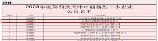 2023年,新材料公司深入落實集團全面創(chuàng)新發(fā)展戰(zhàn)略,通過產(chǎn)品分級、原料資源開發(fā)、技術(shù)及工藝創(chuàng)新、組織效能優(yōu)化等舉措,加速產(chǎn)品研發(fā),加快高成長企業(yè)梯度培育,在生產(chǎn)經(jīng)營、企業(yè)培育、組織建設(shè)等方面逐步邁向高質(zhì)量發(fā)展。天津市金橋新材料有限公司被評定為“2023年第四批入庫雛鷹企業(yè)”,“第9批入庫科技型中小企業(yè)”,“第四批創(chuàng)新型中小企業(yè)”。