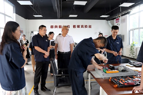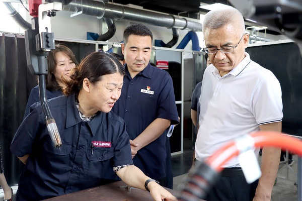 隨后,賈堤一行走進工業(yè)機器人實訓基地,深入了解了集團技能人才培養(yǎng)與焊材智能化生產(chǎn)線建設情況。賈堤指出,金橋集團要加大自主研發(fā)投入,夯實技術底蘊,提升品牌價值,拓寬人才引進渠道,進一步加大吸納人才的力度,促進高質量充分就業(yè)。